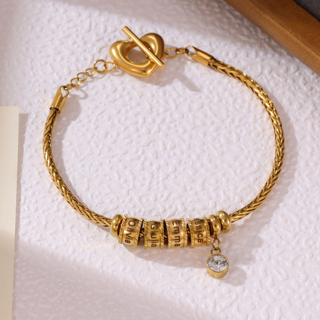 Bracelet Prénoms Charms Personnalisé Cœur & Cristal
